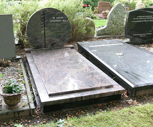 Ontdek de prachtige Grafsteen Cirkel van De Weijs natuurstenen. Het opvallende kopstukje van deze asymmetrische grafsteen heeft een mooie cirkelvorm, die elegantie toevoegt aan het grafmonument. De vormen zijn sierlijk en vormen een harmonieus contrast met het strakke geheel van het liggende gedeelte van de grafsteen. U kunt kiezen uit een breed scala aan kleuren natuursteen om uw grafsteen aan te passen aan uw persoonlijke voorkeuren. Bij De Weijs bieden we ook de mogelijkheid om de grafsteen te graveren met symbolen naar keuze. Met een garantie van 30 jaar kunt u vertrouwen op de duurzaamheid van onze grafstenen. Houtsnippers, split of tuinaarde zijn beschikbaar voor installatie, zodat uw eerbetoon aan uw dierbaren perfect wordt verzorgd.