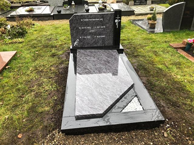 Ontdek de pracht van onze Grafsteen Hoekig bij De Weijs Natuurstenen. Het kopstukje van deze asymmetrische grafsteen heeft een elegante hoekige vorm, waardoor het een uniek en eigentijds karakter krijgt. Deze vormen contrasteren mooi met het strakke ontwerp van het liggende gedeelte van de grafsteen. Kies uit verschillende kleuren natuursteen, zoals het verfijnde Steel Grey, om uw grafsteen aan te passen aan uw persoonlijke voorkeuren. Met onze graveeropties kunt u een persoonlijk eerbetoon creëren, met symbolen die voor u van betekenis zijn. Wij bieden een garantie van 30 jaar, zodat u met vertrouwen kunt investeren in de duurzaamheid van uw herdenkingsplaats. En dankzij ons diverse aanbod van materialen voor de omgeving, zoals split, tuinaarde of houtsnippers, zorgen we ervoor dat uw grafsteen perfect past bij elke setting.