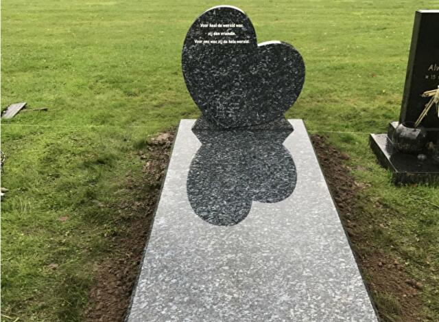 Ontdek de betoverende Grafsteen met Liggend Hart van De Weijs Natuurstenen. Het kopstukje van deze asymmetrische grafsteen is gevormd als een elegant liggend hart, waardoor een ontroerende en sierlijke uitstraling ontstaat. Het contrasteert prachtig met het strakke design van het liggende gedeelte van de grafsteen. Kies uit een scala aan natuurlijke kleuren, zoals het schitterende Star Galaxy, om uw grafsteen te personaliseren en een eerbetoon te creëren dat echt uniek is. Met onze graveeropties kunt u symbolen toevoegen die een speciale betekenis voor u hebben, waardoor uw gedenkplaats nog persoonlijker wordt. Bij De Weijs bieden we een garantie van 30 jaar, zodat u verzekerd bent van de duurzaamheid en kwaliteit van uw grafsteen. Creëer een blijvende herinnering met De Weijs Natuurstenen.