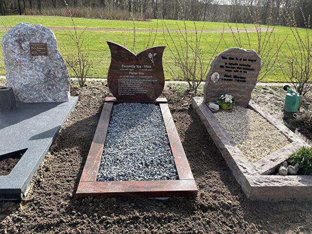 Bij De Weijs Natuurstenen presenteren we met trots onze Grafsteen Tulp. Het kenmerkende kopstukje, met zijn prachtige tulpvorm, voegt een vleugje elegantie toe aan het strakke design van deze grafsteen. Onze Grafsteen Tulp is verkrijgbaar in een breed scala aan kleuren, waaronder het tijdloze Steel Grey dat op de afbeelding te zien is, maar ook andere kleuren natuursteen zijn mogelijk. Bij De Weijs geven we u de vrijheid om uw grafsteen volledig naar uw eigen smaak samen te stellen. Of het nu gaat om het graveren van persoonlijke details of het toevoegen van symbolen, wij staan klaar om uw eerbetoon uniek te maken. Met onze geruststellende garantie van 30 jaar kunt u met vertrouwen investeren in een blijvende herinnering. En voor de plaatsing bieden we verschillende opties, zoals split, tuinaarde of houtsnippers, zodat uw grafsteen perfect past bij de omgeving waarin deze wordt geplaatst.